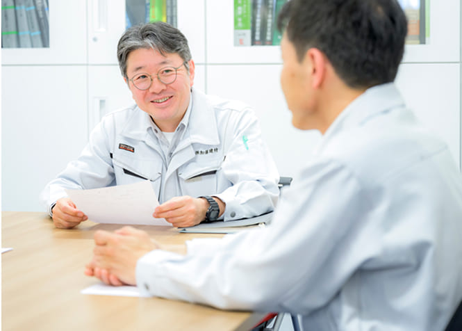 若手社員からベテラン社員まで、年齢や立場関係なく仲がいいアットホームな職場です。ここには、新人社員が一人前になるまでみんなで育てるあたたかい社風があります。